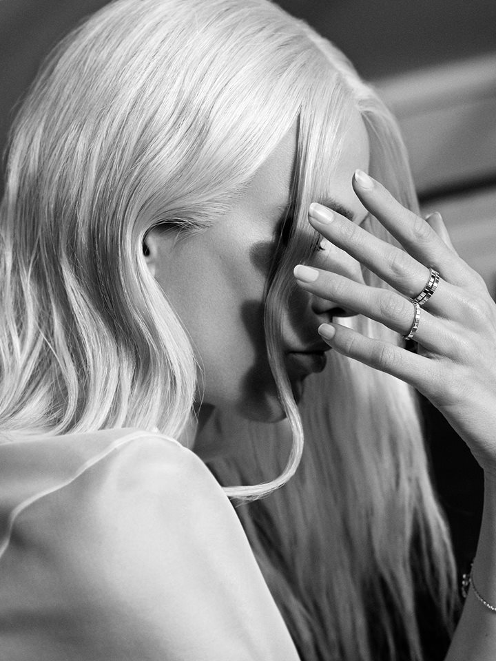 “Based on a perfect square, the diamonds on our rings build a radiant anthem to light, matching this precious geometry to changing moods,” says Chopard jewelry house.