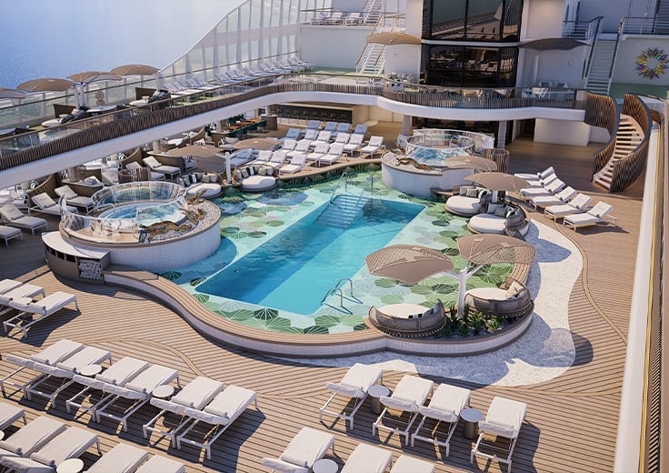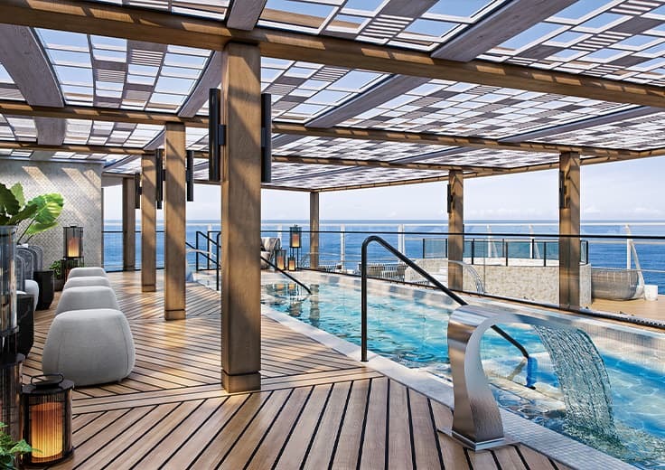 At 791 feet long and over 67,000 tons, the ship can accommodate 1,200 guests at double occupancy. Vista cruise ship has the most spacious standard staterooms at sea, each measuring more than 290 square feet, and introduces the new Concierge Level Veranda Staterooms, which are perfect for solo travelers. The ship features an elevated range of onboard activities, including eight bars, lounges, and entertainment venues, a luxurious Aquamar Spa + Vitality Center, and an Aquamar Spa Terrace.