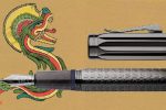 Dark, glassy and smooth – obsidian is a naturally occurring volcanic glass created when lava cools rapidly. The grip of the Pen of the Year 2022 unveiled by Graf Von Faber Castell is made of this cool, matt stone. Mictlāntēcutli – the god of the dead – adorns the end piece. The charcoal-grey barrel, which has a diamond-like carbon coating, has a military look to it. The walls found in Templo Mayor, which were made of rows of skulls, are the inspiration behind this 2022 design.