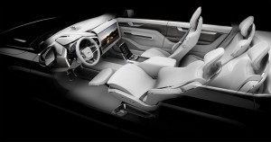 Volvo Cars Concept 26 – Wide angle shot of Relax mode with 25-inch screen flipped up and seat reclined