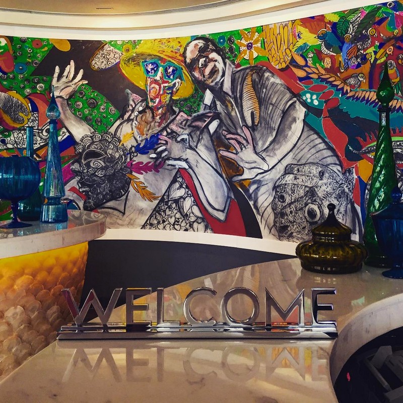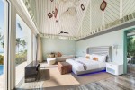 Imagined by interior design house Design Wilkes and architects Eco-ID, W Goa combines the rustic and dramatic landscape of Goa with an exuberant spirit that is unique to W Hotels. The grand entrance features huge, unframed doors that are perpetually open and adorned with art by Goan artist Subodh Kerkar, representing the lunar phases and a nod to Goa’s full moon party culture. Just steps away, behind the reception pods adorned with simmering white Capize shells, is a massive street art mural by Indian artist M. Narayan featuring gutsy, raw imagery that celebrates the melting pot culture of Goa, as well as the spectrum of color one can see through divine meditation.
