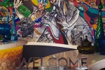 For the interiors, the team at Design Wilkes celebrated the local and foreign cultures of Goa, incorporating rich colors and fabrics across the hotel. Each guestroom is drenched in a psychedelic look and feel with trippy hues of purples and blues creating a kaleidoscopic melding of color throughout. Many fixtures – from foggy metal closet doors to the “beaten” metal drawers in the bathroom – are purposefully designed so that guests cannot clearly see themselves, but rather just their shape and movements. Each guestroom features a chandelier that looks as though the lights are melting from the ceiling, and each bathroom features a mirror adorned with the shape of the Bodhi Leaf which is often associated with enlightenment.