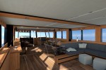 The Wally inside-outside concept runs throughout this displacement yacht: the living area under the superstructure is completely surrounded by glass offering a 360-degree view.