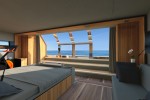 A first of Wally Casa is the outdoor custom hot tub located in the forward social cockpit of the main deck, with beautiful sun pads on both sides. The garage of the 5-meter tender is uniquely located amidships over the engine room with direct access to the crew and service area, and separates the guest and crew quarters for maximum privacy.