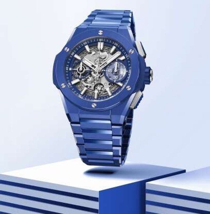 The latest iteration, the Hublot Big Bang Integral Ceramic, is integral through its monobloc architecture with the bracelet integrated into the case, its monomaterial ceramic construction, as well as its four monochrome colorways of blue indigo, sky blue, sand beige and jungle green. Each color is available in a limited edition of 250 pieces. Soft to the touch, the ceramic timepiece is scratch-resistant and delightful to wear thanks to low thermal conductivity and its hypoallergenic quality. The 42-mm case is ready for a 72-hour uninterrupted journey tracked by the UNICO V2 manufacture movement.