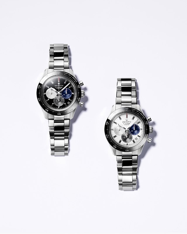 The newest iterations are equipped with the latest version of the El Primero 3600 movement. An engraved ceramic bezel version available exclusively at Zenith physical or online boutiques consists of three separate ceramic elements in the traditional el Primero tricolor palette of gray, anthracite and blue. An entirely rose gold version – including the bracelet and engraved bezel with a 1/10th of a second scale – blends precious luxe with innovation. The black or white dial has signature El Primero tricolor counters with golden hands and markers. And the Chronomaster Sport is now also available in a two-tone aesthetic, combining the durability of stainless steel and the splendor of rose gold.