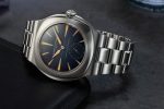 The present-day styling encompasses an opaline dial that transitions from blue at its centre to black near its periphery. Both the hands and indexes feature orange Super-LumiNova, vitalising the overall composition. A snailed small seconds display resides above 6 o’clock and sits beneath a gently arcing tinted sapphire crystal, granting a rounded appearance when viewed from the side.