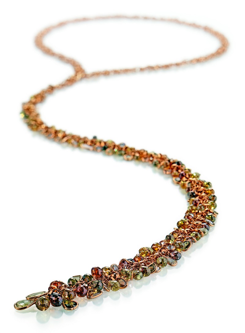 Gellner also introduced RendeZVous – long, distinctive and detailed silver chains with numerous colorful diamond briolettes skillfully accentuating the premium cultured pearls. Another highlight of this year’s novelties is the BOHÈME necklace. The detailed decoration with numerous, delicate diamond roses and finely- faceted diamond briolettes lends an air of colorful playfulness to the voluminous necklace.