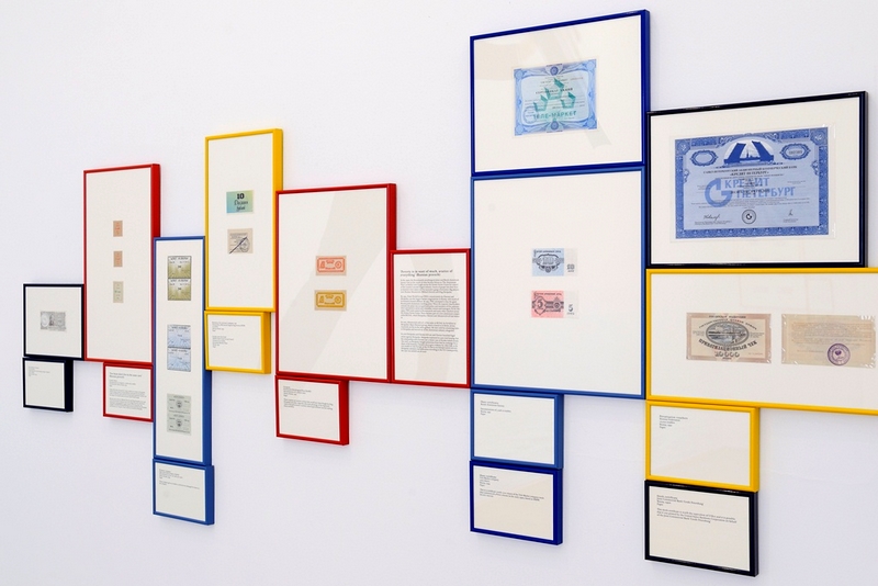 In the British Pavilion at the 55th Venice Biennale, the world’s most prestigious art festival, UK artist Jeremy Deller has provoked controversy and ignited social debate by presenting an installation of the Wende Museum‘s significant collection of early post-Soviet stock vouchers, privatization certificates, and Ponzi scheme coupons that dominated alternative currencies of the early 1990s in Russia. Vouchers and certificates, given to workers at the various factories and collectives as ownership shares, were bought or otherwise obtained by Russian businessmen who would be become known as The Oligarchs, including Mikhail Chernoi , Oleg Deripaska, Boris Berezovsky, and Roman Abramovich.