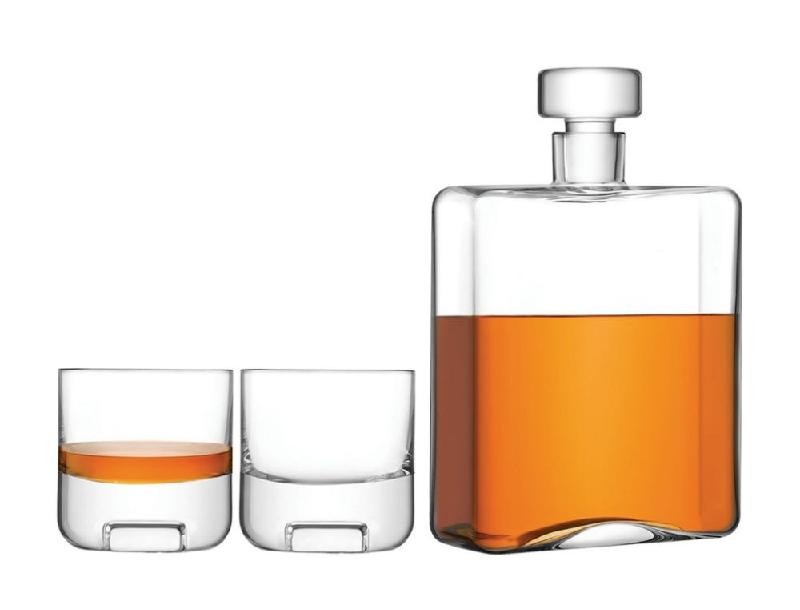 Evocative of LSA International’s artisanal designs, this contemporary whisky set includes an oblong mouth-blown glass decanter and two tumblers. Each glass sees a cube-shaped impression in the weighted base, reminiscent of an ice cube, to complement the decanter’s bold geometric silhouette. Add them to your bar cart or keep safe in an office drawer for impromptu tipples.