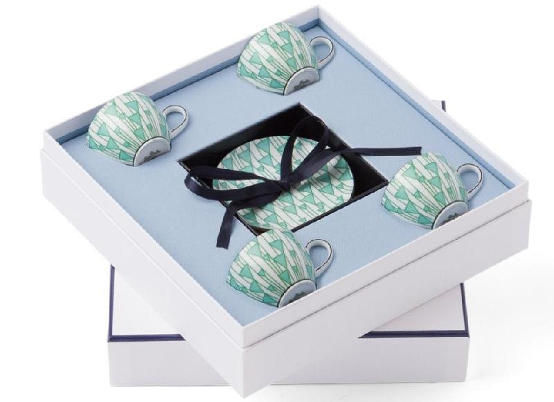 PRADA Porcelain Vienna Coffee Cup and Saucer (Set of 4)