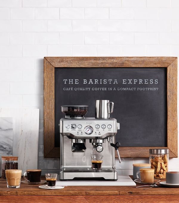 Sage brings professional-grade coffee to the home kitchen with the Barista Express Coffee Machine. Extracting the full flavour of whole coffee beans by grinding them directly into the filter, the process, from bean to coffee, takes less than a minute.
