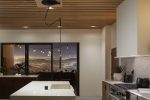 Purist Suspend – ceiling-mounted kitchen faucet featuring a remote puck that manages activation, temperature and volume, and a fully adjustable hose with 180-degree rotation.