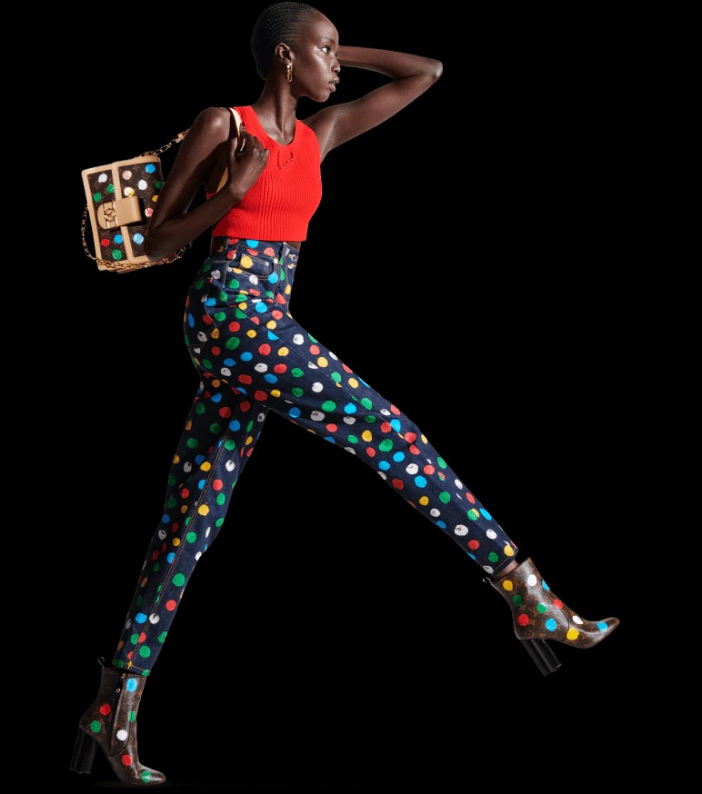Inspired by a hand-painted Monogram trunk by Kusama from the first collaboration, the motif represents the bond between the artist and Louis Vuitton. The dots in the collection use a technique that gives the pattern a realistic hand-painted effect.