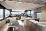 While the Y72 focuses on maximizing interior volume, the S72 emphasizes sociable outdoor living. The yacht features spacious exterior entertaining areas, including a generous dining area in the vast cockpit, a fully equipped galley, and a large aft sunpad positioned above the tender garage. The garage itself can accommodate a tender up to 3.95 meters in length. The interior of the S72 reflects meticulous attention to detail, characterized by clean lines, neutral tones, natural materials, and luxurious yet understated finishes, creating a refined and inviting atmosphere.