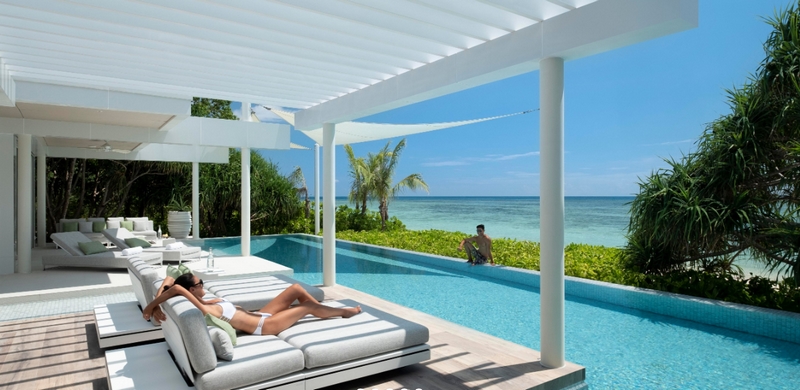 There are one, two, and four-bedroom villas, plus the owner’s exclusive residence also available, in total offering accommodation for 22 guests. Floor-to-ceiling glass doors and windows are delivering spectacular vistas from every angle, whilst breathtakingly beautiful infinity pools complement the beachfront villa locations with style.