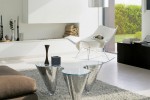 TWIST is an all glass coffee table with a base made of 3 mouth-blown cones. 3 versions are available. This coffee or lounge table is excellently suitable for grouping arrangements because of its adaptable shape. The unexpected twist becomes clear in the swings of the outside lines and the intermediate spaces.