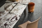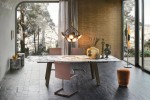 FONTANA is an amazing and exceptional dining table. For this table, Draener developed an innovative, fully automatic extension mechanism, which allows to open and to close the table almost automatically. In this regard it is sufficient to pull out one side of the trapezoidal table top of natural stone and the FONTANA unfolds to its full size, and with the same playful ease it moves back to its original shape.