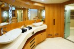 The largest of Johnson Yachts that features the shipyard signature dual level vertical windows with 180 degree viewing capability, the Johnson 93 has many unique features that add enormously to the pleasure of ownership. The ‘on deck’ level owner’s suite provides its occupants with a stunning ‘wrap around ‘view of their surroundings whilst providing a large and totally private space. The vessels wide beam provides a significant increase in internal volume over other vessels in its class.