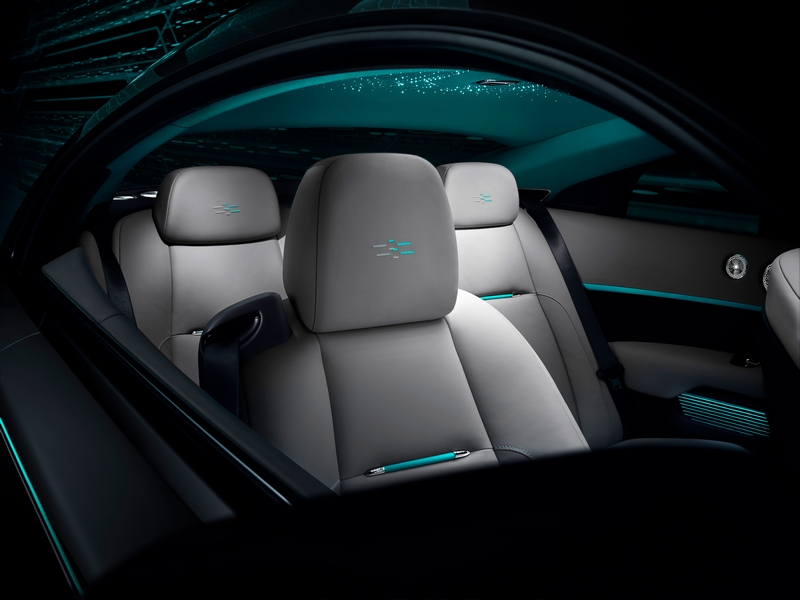 In perhaps the most apparent clue, elements of the cipher are embroidered into Wraith’s headrests, where the customary ‘double-R’ emblem can so often be found. For the driver’s enjoyment, an intriguing screenprint flows across the metal fascia, spanning the width of the interior.