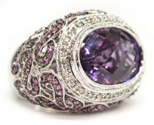 Ladies 14kt White Gold, Amethyst, Pink Sapphire and Diamond Estate Ring