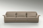 The Winchester sofa is defined by its slender silhouette accentuated by armrests stretching outwards that trace a clean, essential contour. The base is set back from the sofa edge, keeping it slightly raised, thus highlighting its aerodynamic look. Available with leather or cloth upholstery, the Royce version comes with a solid Chestnut or Burr Walnut briar root body.