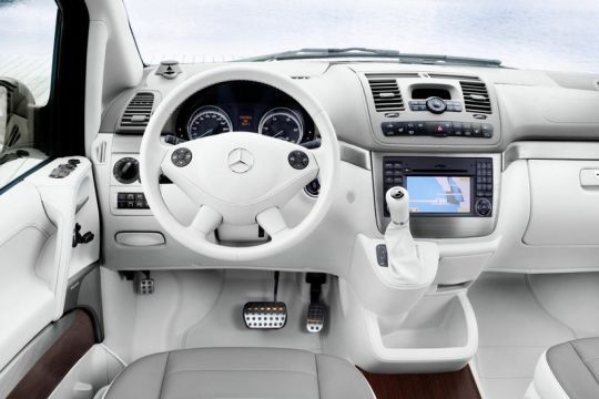 With the Mercedes-Benz Viano Vision Pearl showcar, presented at this year’s International Motor Show (IAA) in September, Mercedes-Benz demonstrates what is possible in the van sector. A full leather interior in white/grey, wood floor, brushed aluminium trim, chromatically tinting windows and the Bang & Olufsen high-end sound system “BeoSound Viano” make a journey in the Viano Vision Pearl a memorable experience for up to six occupants.