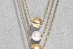 You’ll glow with layers of pendants crafted in 18k gold and pearls.