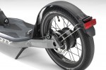 In contrast to these, however, it also features an electric auxiliary drive in the rear wheel making it more comfortable and more fun to ride. The brushless hub motor provides effective support for the rider and accelerates the BMW Motorrad X2City to up to 25 km/h. The operating unit on the handlebars offers five speeds (8, 12, 16, 20 and 25 km/h). For safety reasons the supporting power of the electric motor is only activated once a speed of 6 km/h has been reached. The electric drive can be turned off at any time using a switch in the brake lever, thereby interrupting any electric support.