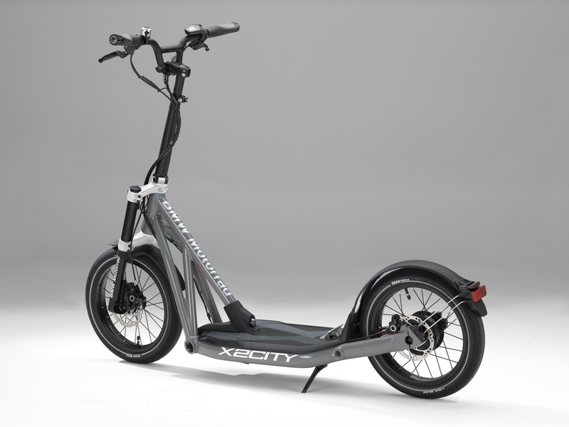 The BMW Motorrad X2City is ideally suited to all situations where individual mobility by car or public transport reaches its limits. It can be used as a stand-alone means of transport over short distances, or as a supplement to the car or to public transport – any combination is possible. Thanks to its low weight of 20 kilograms and the foldable steering unit, the BMW Motorrad X2City can be stored easily in the luggage compartment of a small car.