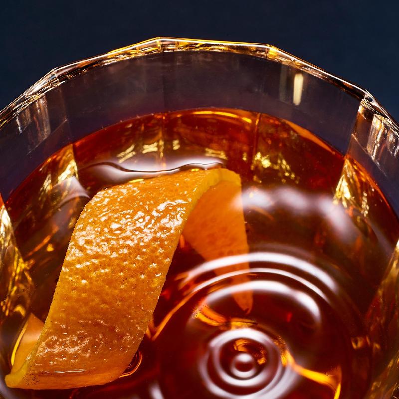 Pour all ingredients into a rocks glass with ice, stir to combine, and garnish with an orange twist, peach slice or peach flower.
